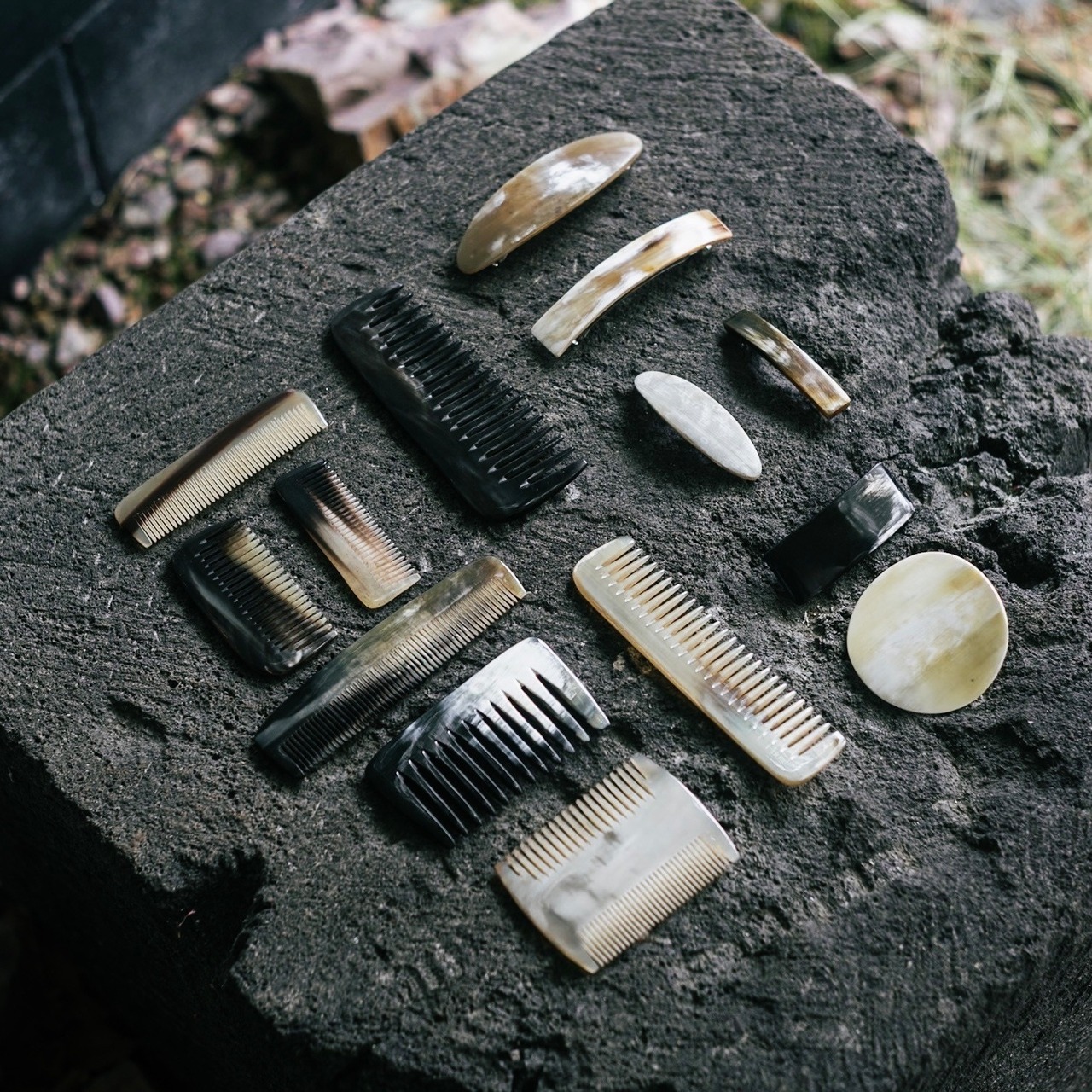 水牛の角を使ったへアアクセサリーやコームはどれも一点物になります。ぜひ、お気に入りの1点を探しにいらしてください。