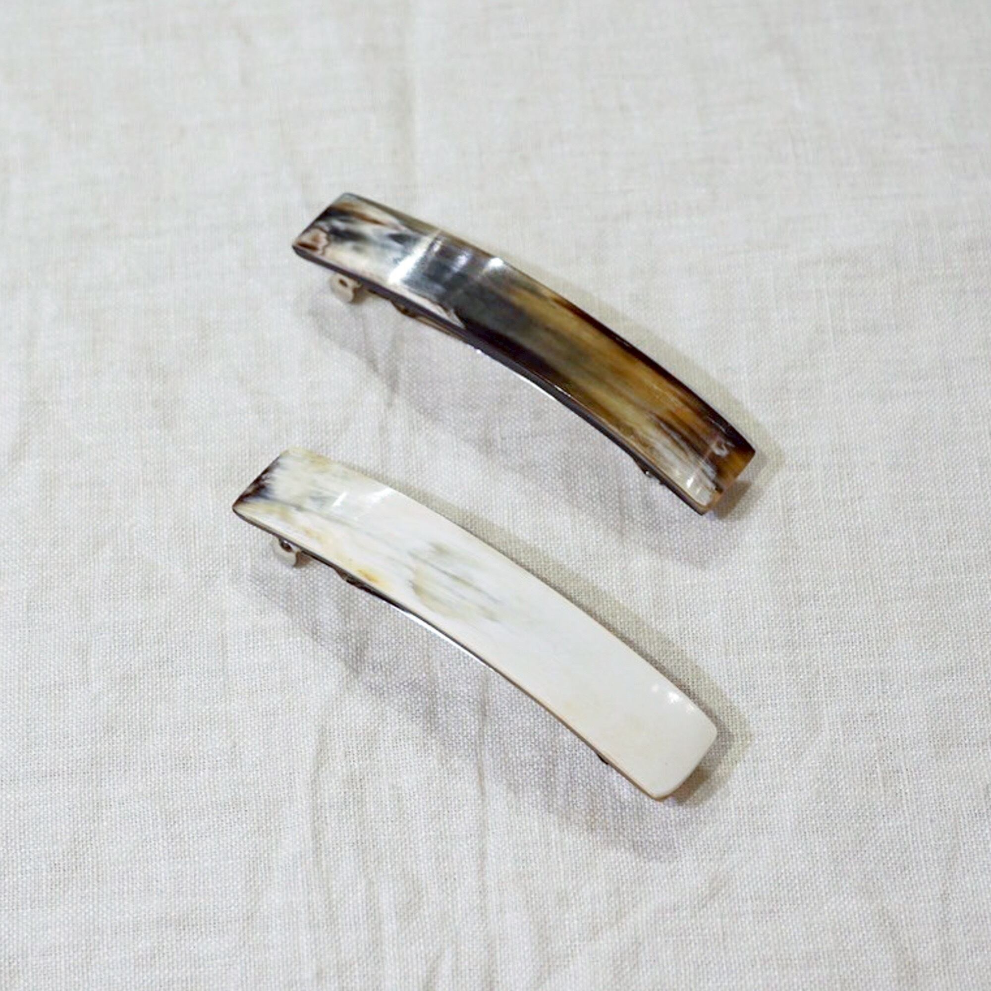 水牛の角や木材を使ったバレッタやヘアクリップは、天然素材のためどれも表情が違い、模様、凹凸、色遣いなど...ひとつとして同じものはありません。またプラスチック製品と違い静電気を帯びていないため、乾燥時期も安心。幅広い美容関係者に愛用されています。
