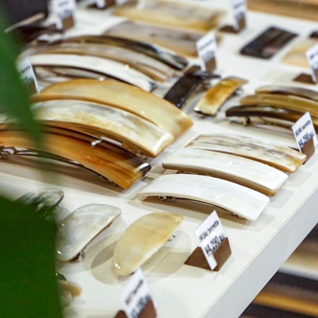 水牛の角を使ったへアアクセサリーやコームはどれも一点物になります。ぜひ、お気に入りの1点を探しにいらしてください。