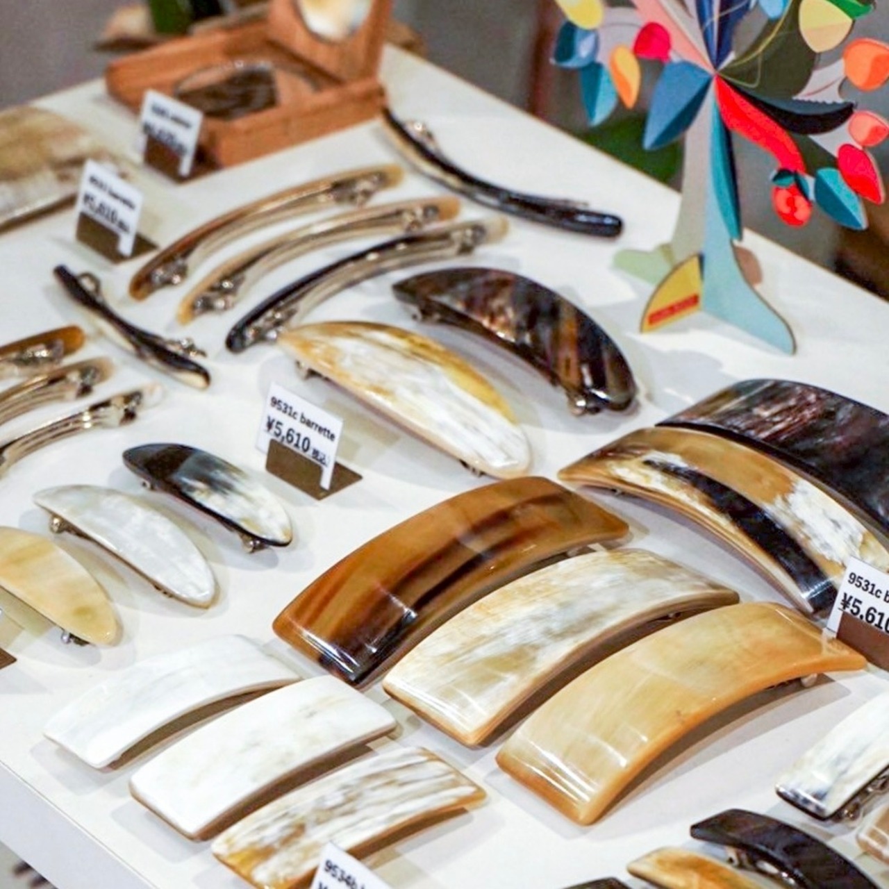 水牛の角を使ったへアアクセサリーやコームはどれも一点物になります。ぜひ、お気に入りの1点を探しにいらしてください。
