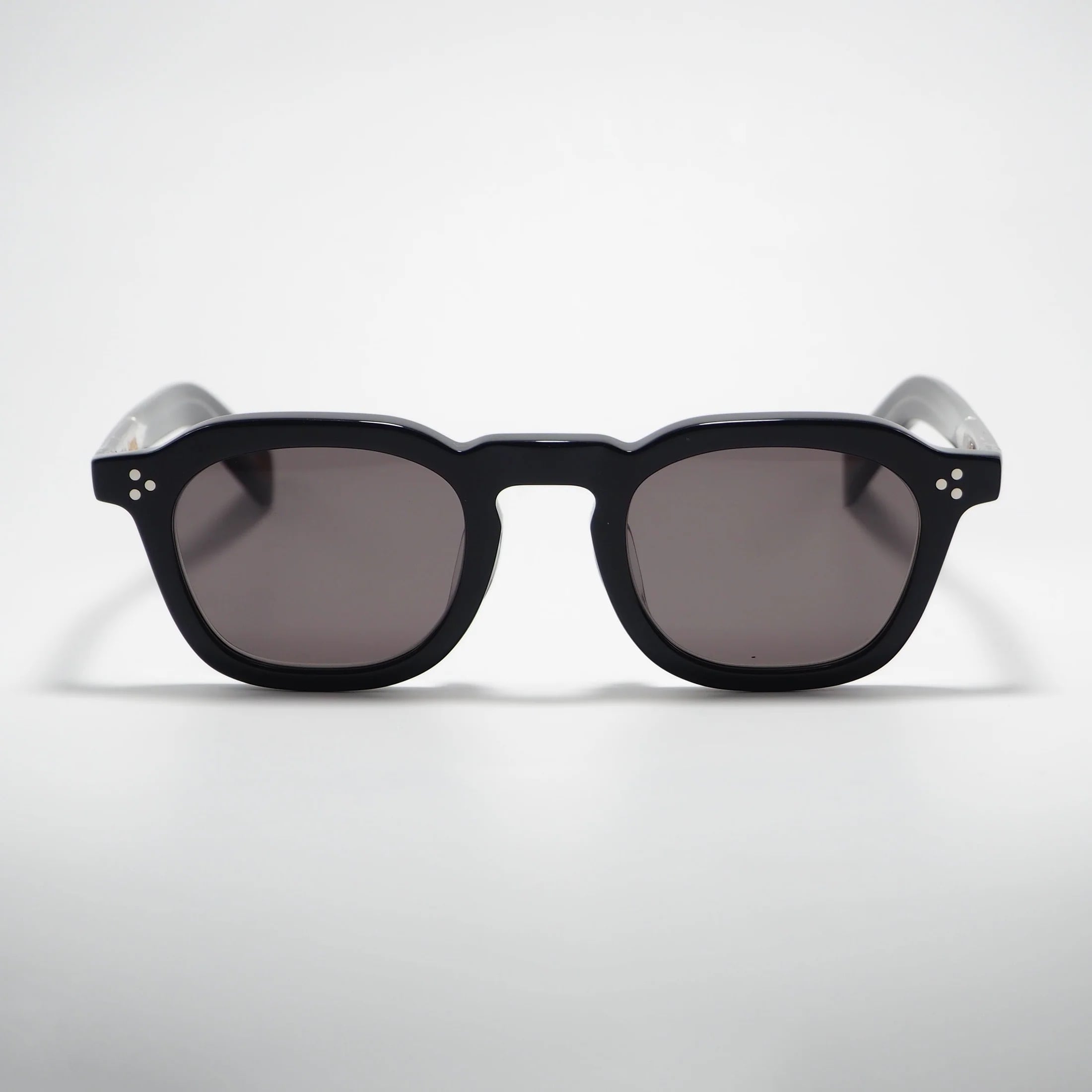 肉厚なフロントと3点のリアルリベットやテンプルデザインが特徴。