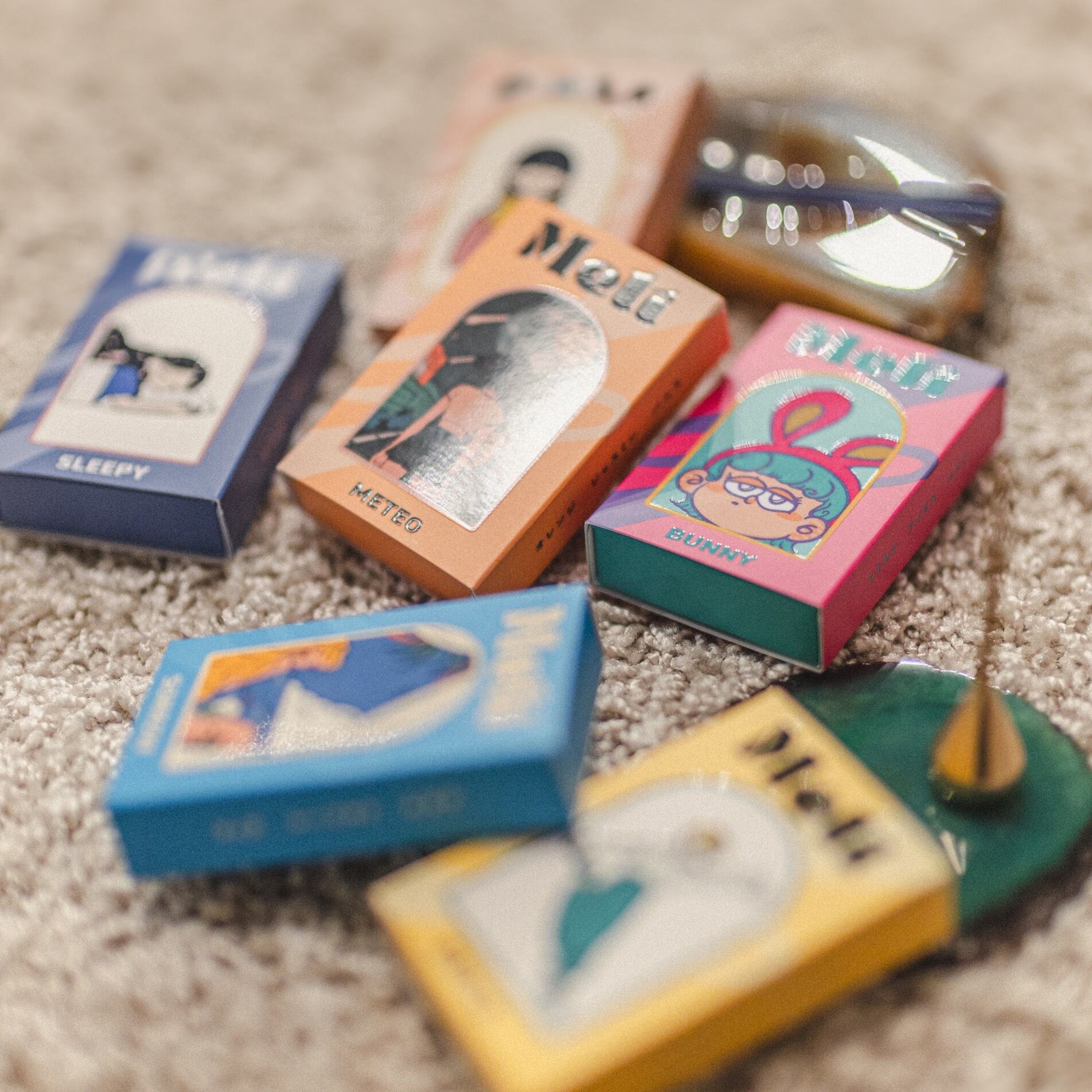 それぞれのパッケージに特色を使用し、特徴的なイラストにはシルク厚盛加工を施すことでインテリアとしても飾っていただけます。