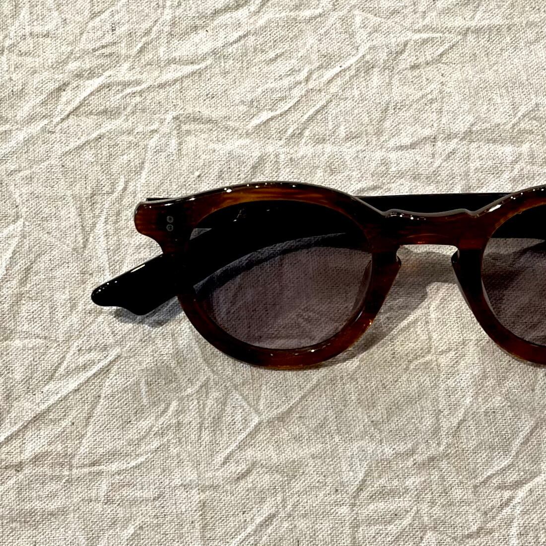 160年以上の歴史を持つイタリアのマッケリー社の生地を使用。レンズも特注で生産したヴィンテージのフラットレンズを思わせる2カーブレンズで仕立てています。